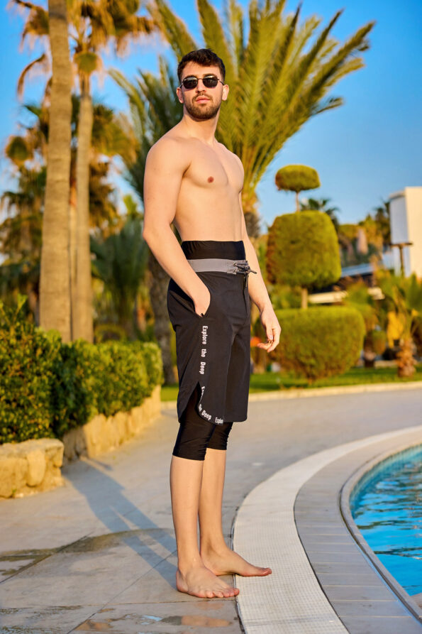 Marina Erkek Füme Desenli Tesettür Mayo Deniz Şortu S2106