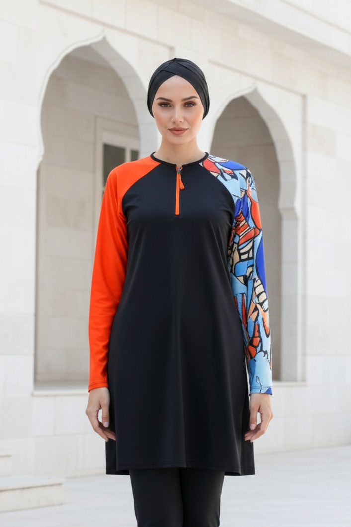 Tam Kapalı Tesettür Mayo Siyah M2117 modeli, sade çizgilerle şekillendirilmiş modern tasarımı sayesinde farklı yaş gruplarına hitap eden dengeli bir kullanım sunar. Yuvarlak hatlara sahip silueti ve klasik yaka formu, fonksiyonellik ile estetik görünümü bir araya getirerek zamansız bir stil oluşturur.