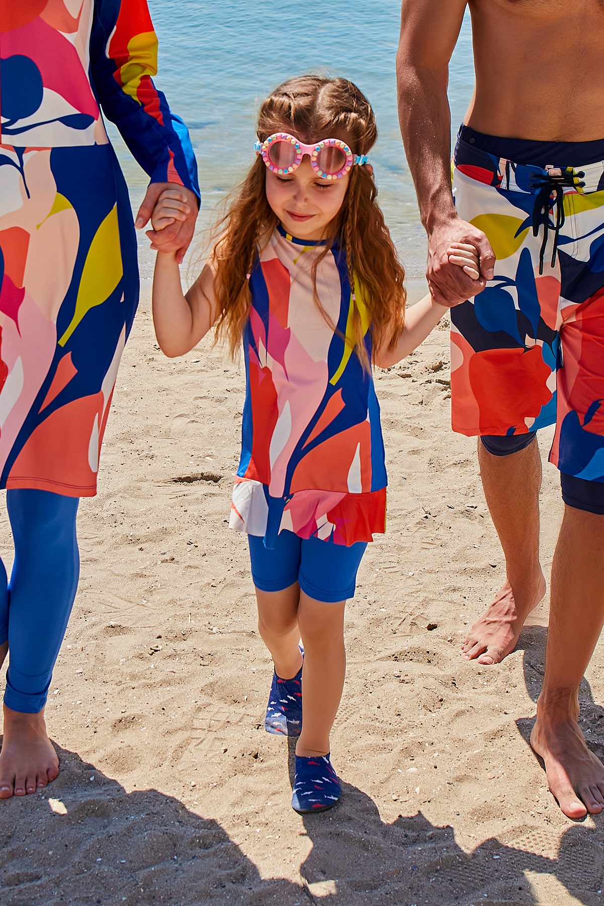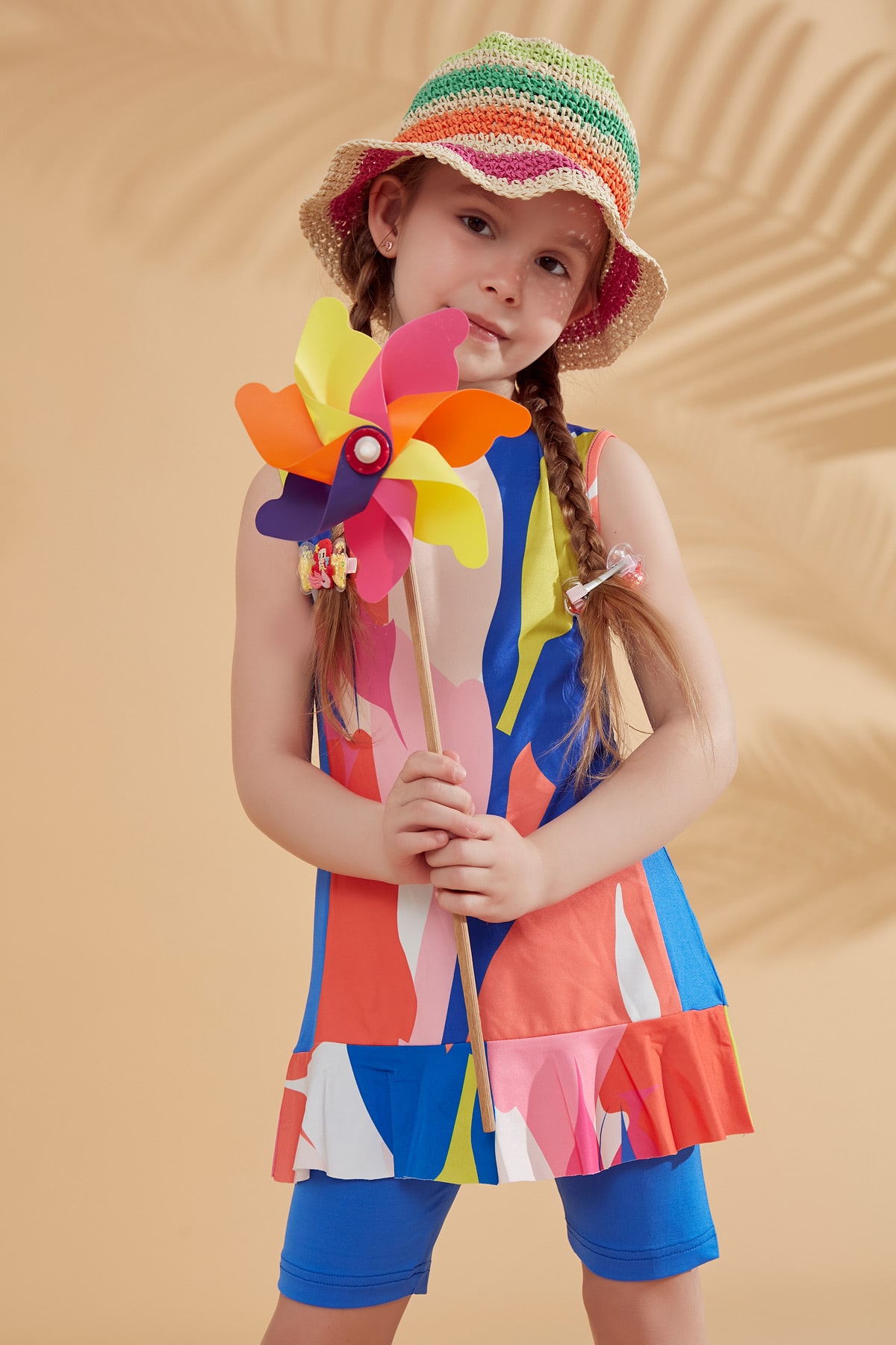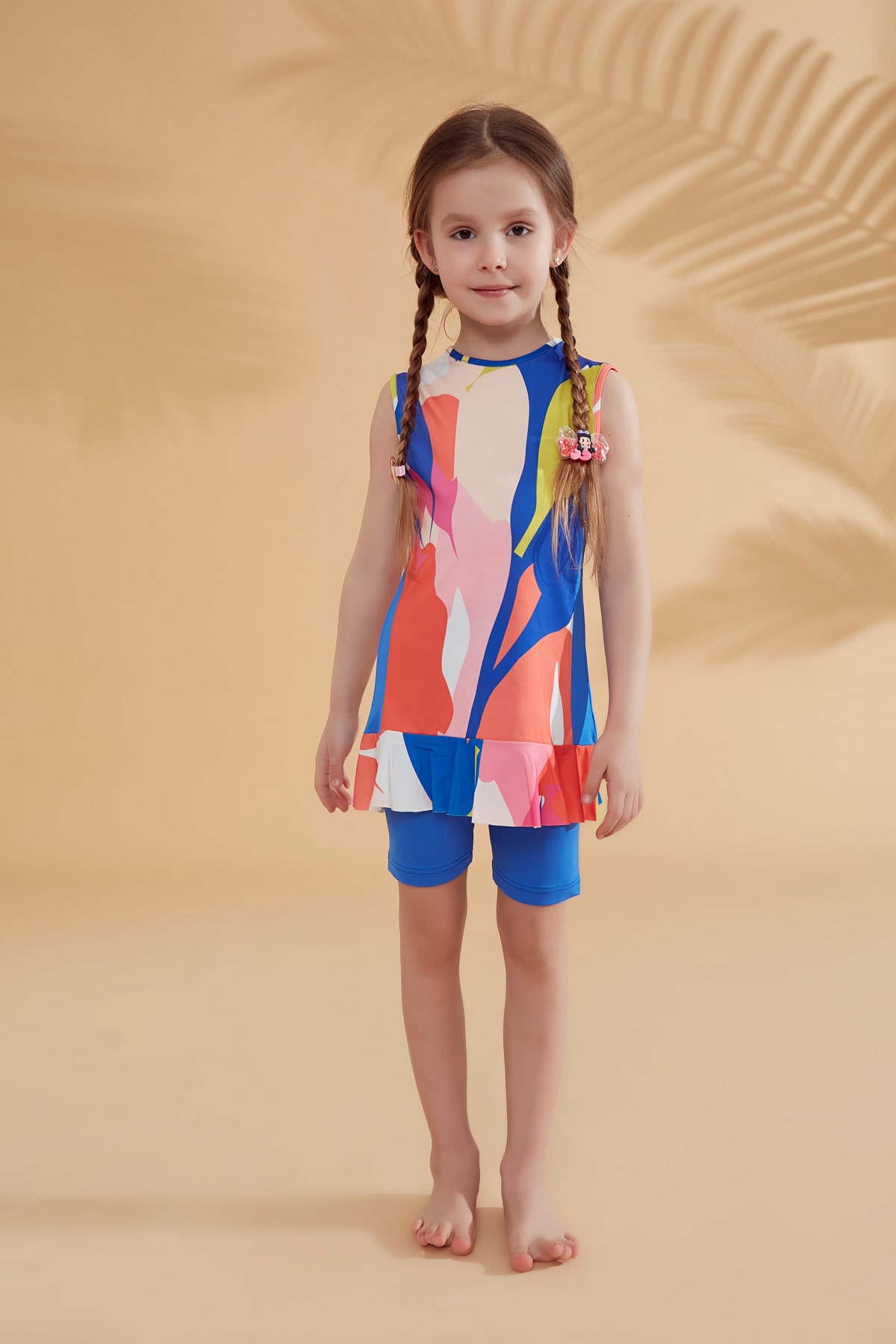 Taytlı Kolsuz Saks Kız Çocuk Mayo K2320